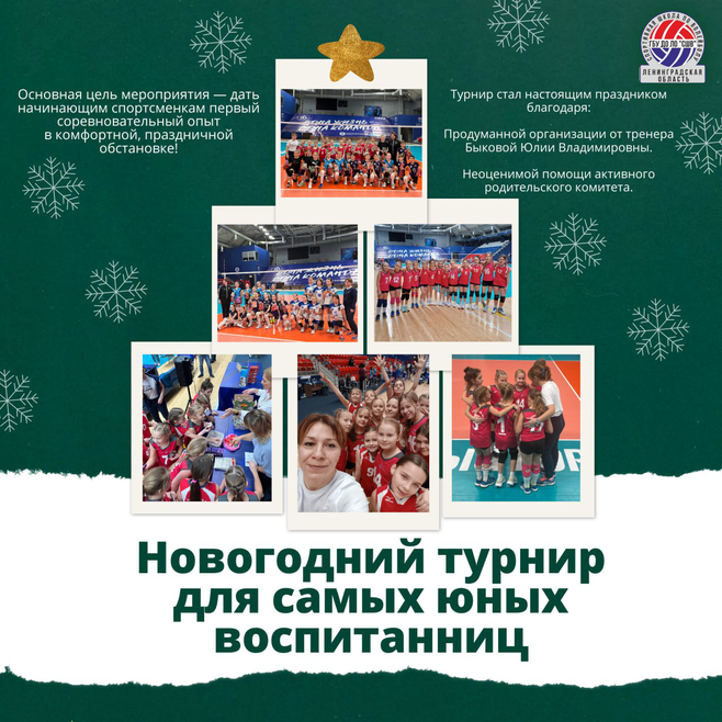 В преддверии Нового года от нашей спортивной школы в спортивном комплексе «Сосновый Бор» царила особая, праздничная атмосфера. 28 декабря 2025 года состоялся новогодний турнир по волейболу среди самых младших обучающихся — девочек 2014-2017 годов рождения.