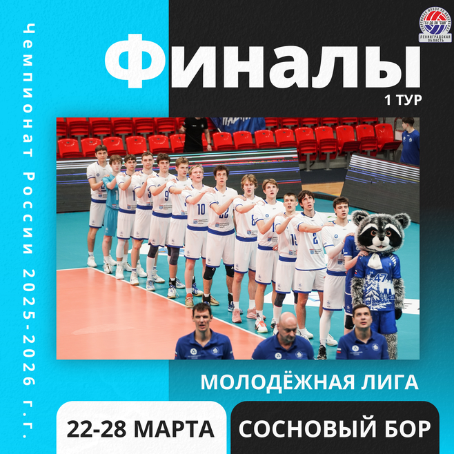 С 22 по 28 марта наш город принимает 1 тур финалов турнира — «ГЕОТЕК Молодёжная лига» Чемпионата России по волейболу среди мужских команд сезона 2025-2026. Это главные молодёжные соревнования страны, и они пройдут на нашей площадке!