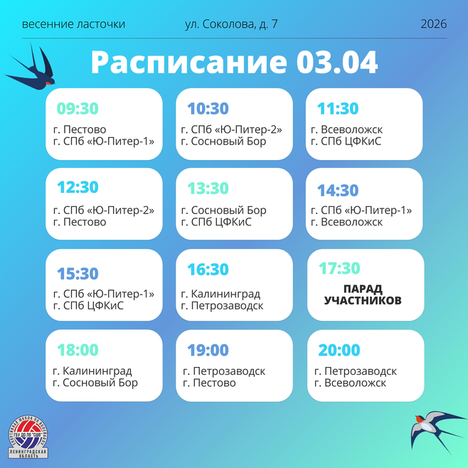 3 апреля 2026 года Сегодня, 3 апреля, в Сосновом Бору начинается наш традиционный волейбольный турнир! Поддержим команды с самого утра! Расписание игр прикрепляем) Приходите, будем болеть вместе!